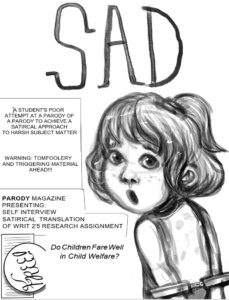 This piece by was written by Maisson Bray is titled, “Sad Magazine,” and it was written in Nicole Warwick’s Writing 2 class. To read this remarkable graphic novel click here.